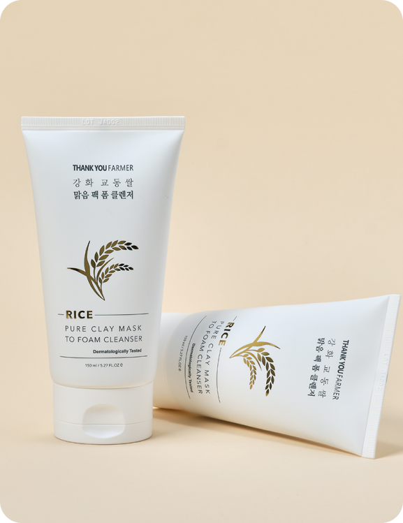 A brightening rice skin care product that doubles as a clay mask and foam cleanser, helping remove dead skin cells, impurities, and excess sebum.